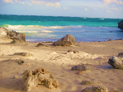 O dia que antecedeu o regresso a Portugal, eu , meu irmão e mais uns quantos companheiros de viagem, decidimos que era de aproveitar as poucas horas que ainda tinhamos disponiveis, e dessa forma, surgiu a ideia de visitar Tulum, local a cerca de trinta minutos de carro, do hotel onde estavamos instalados. Esta era uma visita que até então, não estava prevista. Por vezes, é saudável que o destino ou o acaso nos surpreenda, isto se for pela positiva. E foi.. Pedimos então dois táxis na recepção do hotel, ( o que é sempre mais seguro, por todas as razões e mais algumas ), e lá rumamos à descoberta de Tulum.- Ali chegados, apressámo-nos a adquirir os ingressos de entrada, uma vez que faltavam pouco mais de duas horas para o encerramento do Parque Arqueológico. Ao entrar-mos nas ruínas da cidade, ficamos estupfactos pela beleza do local: harmonia perfeita entre natureza e Património construido. Da sua história, crê-se que a cidade terá sido edificada no primeiro milénio da nossa Era, sob clara influência Tolteca. Esta bela cidade, encontra-se protegida por uma espessa muralha, que a isola do exterior, à excepção da zona escarpada, de onde se tem uma deslumbrante visão do mar das caraíbas, no seu tom azul-turquesa. Consta, que em 1518, uma expedição, comandada por Juan de Grijalva, terá avistado do mar, as Torres de Tulum, a " cidade do amanhecer ", a que os cronistas de várias expedições na época, compararam a Sevilha, tál era a sua beleza. De todas as cidades Maias, esta é a que apresenta melhor estado de conservação, aliada ao facto de também ser a única à beira-mar, daí a sua enorme importância como entreposto comercial. Os primeiros contactos do "homem branco", com os Maias da península do Yucatán, ocorreu em 1511, junto a Tulum. Nesta costa, são devolvidas ao mar, as pequenas tartarugas criadas em cativeiro no Parque Temático de Xcaret. É também local de desova das mesmas. Acabada a visita, e dando por bém empregue o pouco tempo disponível, era chegada a hora de regressar ao hotel. Mas, como nem tudo é perfeito, à saída do Parque, quis o destino reservar-nos um daqueles postais de férias, que qualquer turista, por mais emoções que goste, dispensa em absoluto: um grupo de mexicanos alcoolizados, degladiava-se numa luta sangrenta sem igual. Ficamos atónitos, paralisados... era um outro México, uma outra realidade. Havia que sair dali em segurança, dado que as pedras, ( quém sabe, roubadas às paredes de Tulum ), eram lançadas em todas as direcções por esta turma, que certamente não estavam nos seus melhores dias.