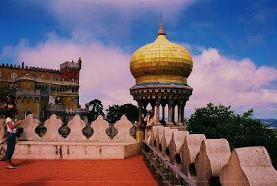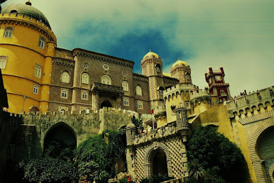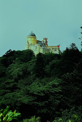 "Eis Sintra e o seu Éden resplandecente surgindo num labirinto multicolor de montes e vales. Ai de mim que não sei pintar nem descrever metade sequer das suas maravilhas, que aos meus olhos se deleitam..." - Assim descrevia, Lord Byron, escritor inglês, aquando da sua chegada em 1809, a esta idílica vila portuguesa, envolta por uma aura de mistério, seducção e romântismo. Sintra vive o seu auge em pleno séc. XIX, atraíndo burgueses, nobres, artistas, poetas e escritores. Lord Byron ou Eça de Queiróz, são apenas dois exemplos, dos muitos que a ela dedicaram devota paixão. Sintra impressiona e extasia, pelos seus exuberantes jardins, parques e matas naturais; pelos seus palácios - verdadeiros testemunhos da arquitectura romântica portuguesa, tendo nos palácios da Quinta da Regaleira e Monserrate, a sua melhor expressão... Contudo, é no Palácio da Pena ou Palácio Nacional da Pena, a cerca de 4,5 klms do centro da vila e a 500m de altitude, que Sintra guarda a sua jóia mais rara - ex-libris ímpar da arquitectura portuguesa do romântismo, que em sua construcção fantasiosa, mistura traços dos estilos manuelinos, góticos e mouriscos. Edificado a partir do ano de 1839, sobre as antigas ruínas do convento dos Jerónimos de Nossa Senhora da Pena, por D. Fernando II de Coburgo-Gotha, que o adquiriu com a intenção de o adaptar a palacete real, para residência de Verão. Esta tarefa, foi entregue ao Barão de Eschege, que claramente, se inspira nos palácios e castelos da Baviera. É considerado o primeiro palácio romântico de toda a Europa. -
